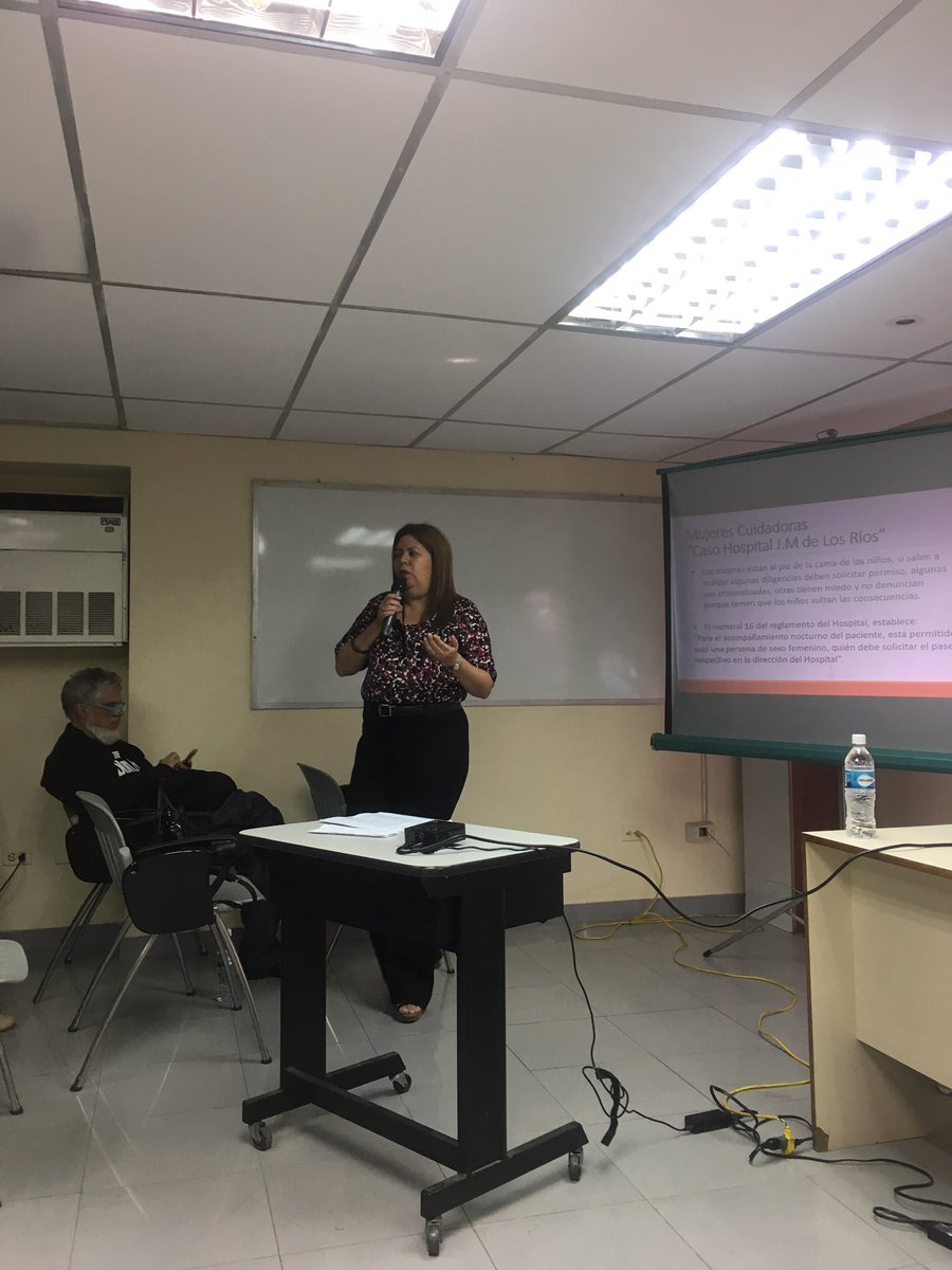 La presidenta de Preparafamilia, Katherine Martínez, mostró con testimonios la realidad que viven las mujeres cuidadoras en el hospital J.M. de Los Ríos. Las carencias en este centro hospitalario son múltiples incluyendo equipos y medicamentos.