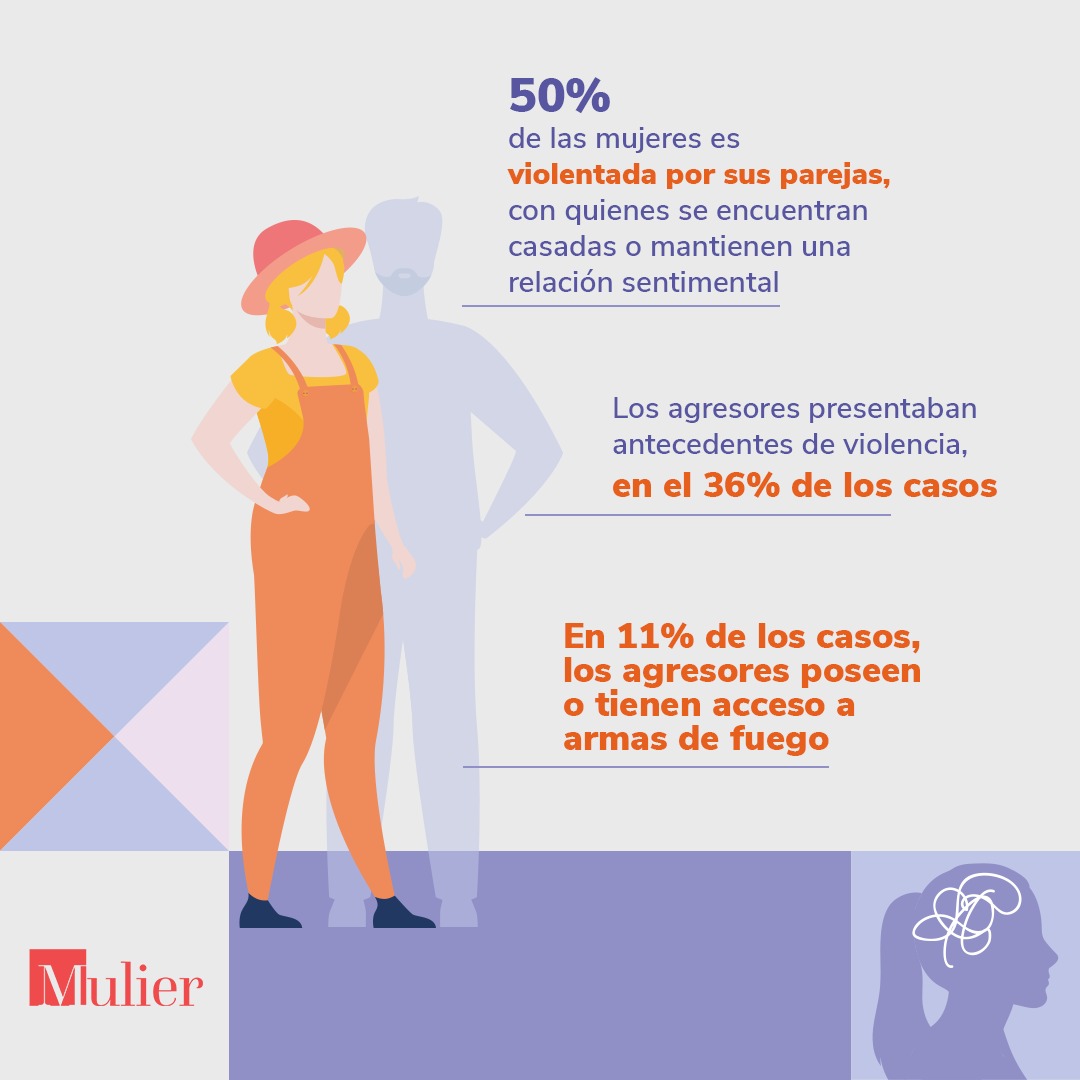 El 50% de las mujeres eran violentadas por sus parejas, ya sea con quienes se encontraban casadas o mantenían una relación sentimental. El 36% de los agresores tenían antecedentes de violencia y el 11% de los casos tenían acceso a armas de fuego, elevando los riesgos.