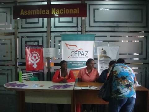 Por segundo año consecutivo, el equipo promotor de la Red Naranja estuvo presente en la Asamblea Nacional como parte de las actividades de los 16 días de activismo para la eliminación de la violencia contra la mujer. Con la participación del voluntariado del Centro de Justicia y Paz (Cepaz) y de beneficiarias del proyecto mujeres sin límites de La Dolorita, se colocó un stand informativo en los espacios del Palacio Federal Legislativo.